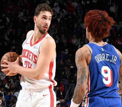 本场比赛火箭有7人得分上双,阿杜21投13中,三分球8投5中,6罚5中空砍了36分7篮板+8失误。申京14投仅5中只有13分8篮板7助攻,在和恩比德的对位中全面处于下风,后者19投10中交出了32分15篮板10助攻的三双。阿门11投7中空砍了17分6篮板9助攻,谢泼德14投仅5中,他们的发挥效率都不如乌布雷(14投10中贡献了26分4篮板。)