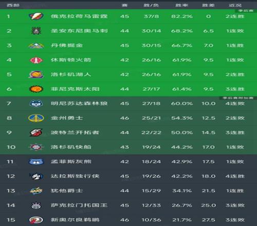 随着火箭6分惜败,勇士两连败,NBA西部最新积分榜出炉!掘金第3